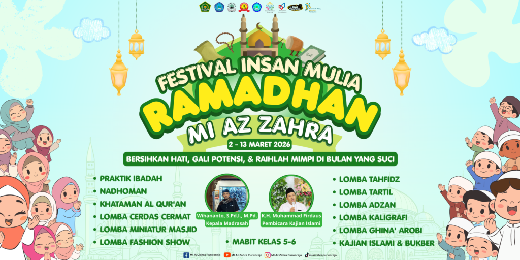 Dalam rangka menyambut bulan suci Ramadhan 1447 H, MI Az Zahra akan menyelenggarakan Festival Insan Mulia Ramadhan yang insyaAllah dilaksanakan pada tanggal 2–13 Maret 2026 dengan mengusung tema “Bersihkan Hati, Gali Potensi, & Raihlah Mimpi di Bulan yang Suci.”